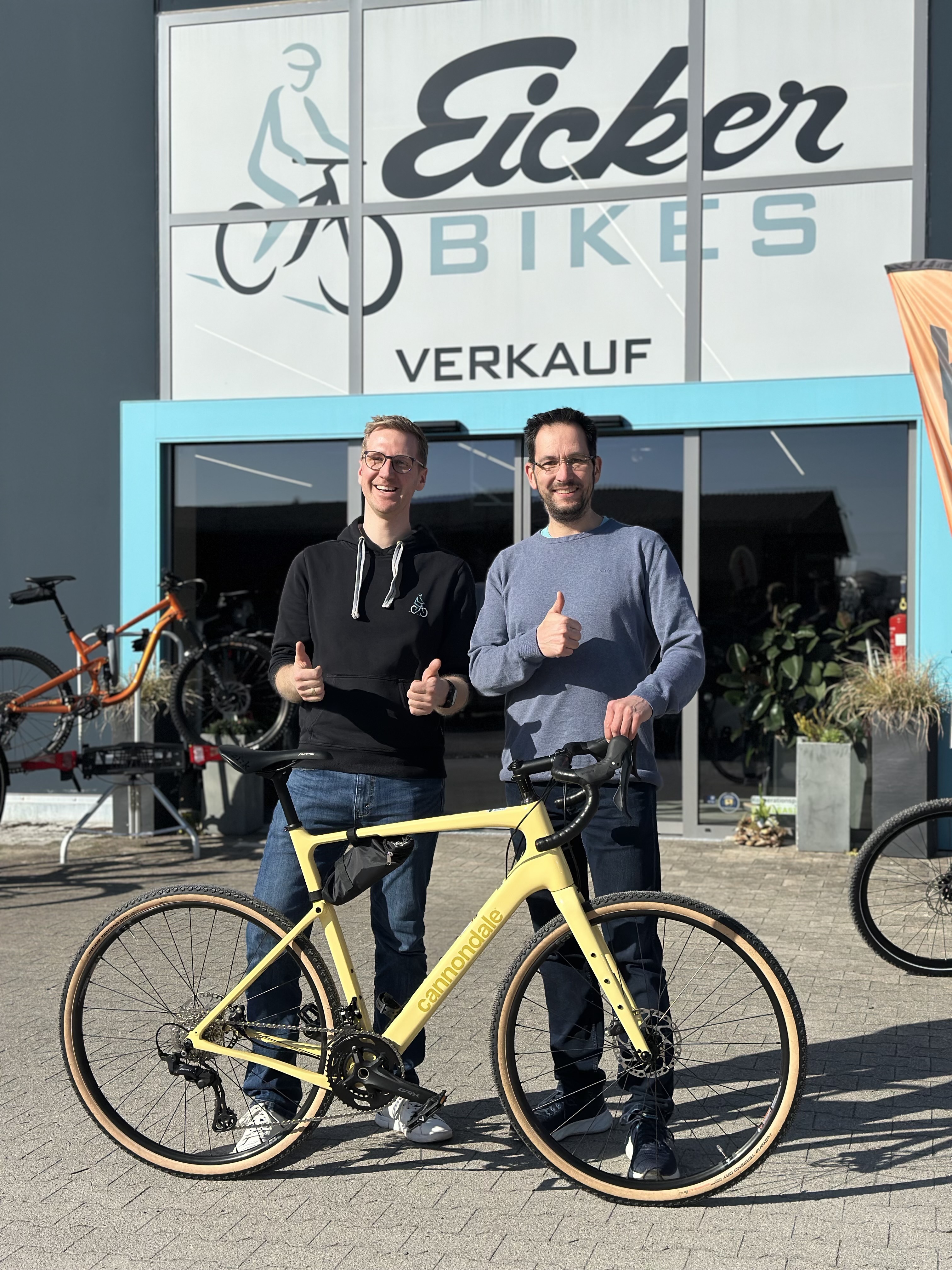 Heute war es soweit: Der glückliche Gewinner unseres GRAVEL-Gewinnspiels, Frank, hat sein neues Fahrrad bei uns abgeholt.